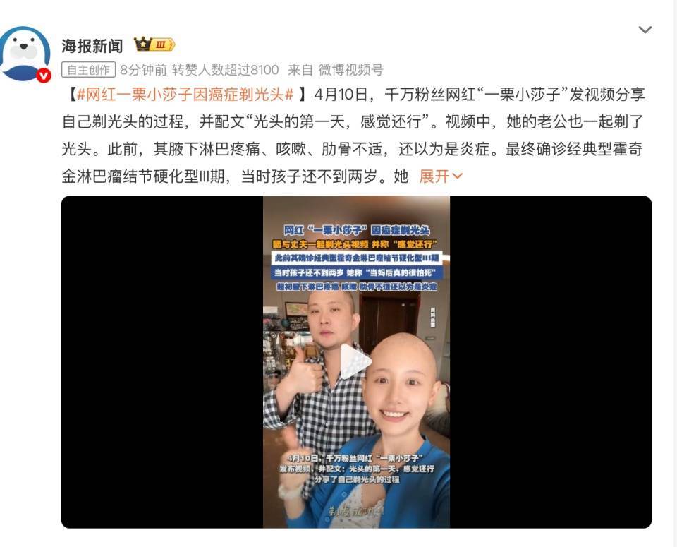 治疗间隙,她规划带女儿看海、拍光头舞蹈视频。她说:"以前总怕掉粉,现在知道能活着就是最好的素材。"生命或许关上一扇门,但光头的她,正用微笑撕开命运的裂缝,看到更多光。